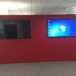 Notre solution : Nous avons donc suivi les plans de l’architecte et fabriqué une bibliothèque effet déstructuré en bois blanc 30mm d’épaisseur avec chants noirs et les portes battantes finition noyer équipées de charnières invisibles munies du système BLUMOTION®. Nous avons tiré une prise depuis la chambre derrière la cloison et en avons intégré une autre dans la partie basse du meuble ainsi qu’un miroir sur la partie donnant sur le salon. La prise nouvellement installée nous permet également d’alimenter les bandes LED multicolores encastrées et contrôlées à l’aide d’une télécommande.