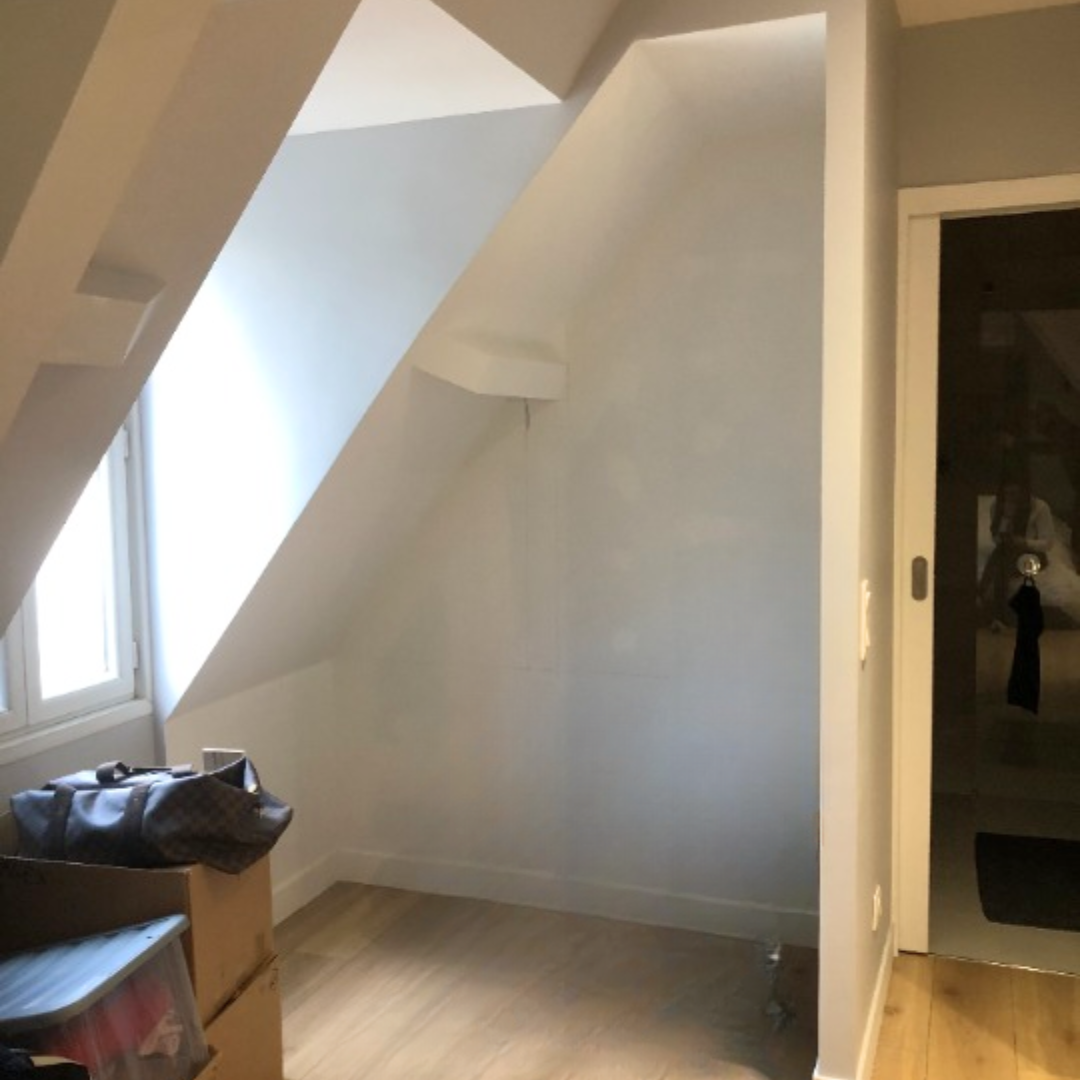 Demande du client : La cliente souhaitait optimiser un espace très difficilement exploitable afin de créer un maximum de rangement tout en créant une pièce esthétique pour la chambre à coucher.